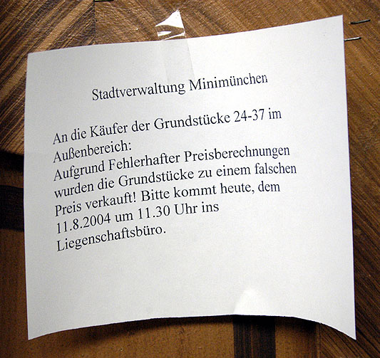ArchitekturDie meisten in Mini-München Arbeitenden sind bei der Stadt Mini-München angestellt. Den großen Reibach machen manchmal selbstständige Mini-Münchener Geschäftsleute: Sie dürfen behalten, was nach Steuern übrig bleibt. Wollen sie das Geschäft draußen betreiben, müssen sie erst ein Grundstück erwerben und ein Gebäude errichten. |