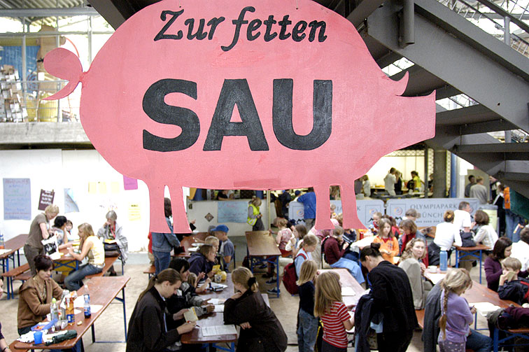 Gasthaus "Zur fetten Sau"2000 Bürger im Durchschnitt müssen täglich verpflegt werden. Eine Riesenherausforderung für das Stadtrestaurant „Zur fetten Sau“. Das Restaurant taucht als Tagesordnungspunkt immer wieder auf Bürgerversammlungen auf. Warteschlangen seien zu lang, der Kuchen könnte üppiger ausfallen – etwas zu meckern finden kritische Bürger immer. |